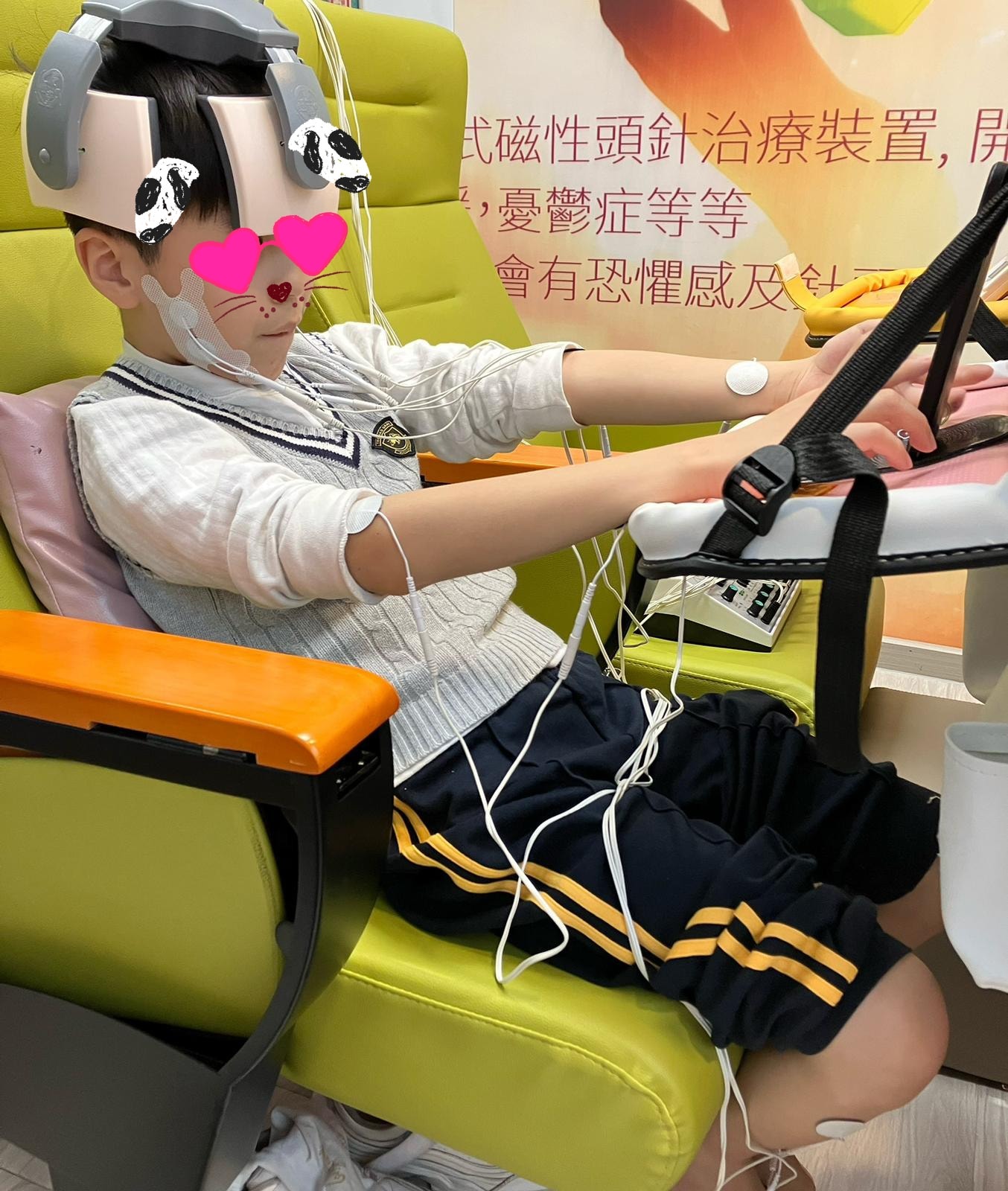 仔仔現在6歲,在 3歲2個月時確診 ASD,之後在 5歲 4個月時同時確診 ADHD。。。 更加上仔仔係學校突然情緒失控,被學校要求縮減返學時間到一小時,更不能讓仔仔回課室多於10分鐘,整段時間簡直好似過左 3年零 8個月咁痛苦。。。 回顧返第一次做,仔仔都有點抗拒,但未至於衝出門口,已做咗幾次,同仔仔傾好左,治療期間可以休息一次,明顯效果幾好,仔仔都開始接受了,期待仔仔有更進一步既改善 ☺️